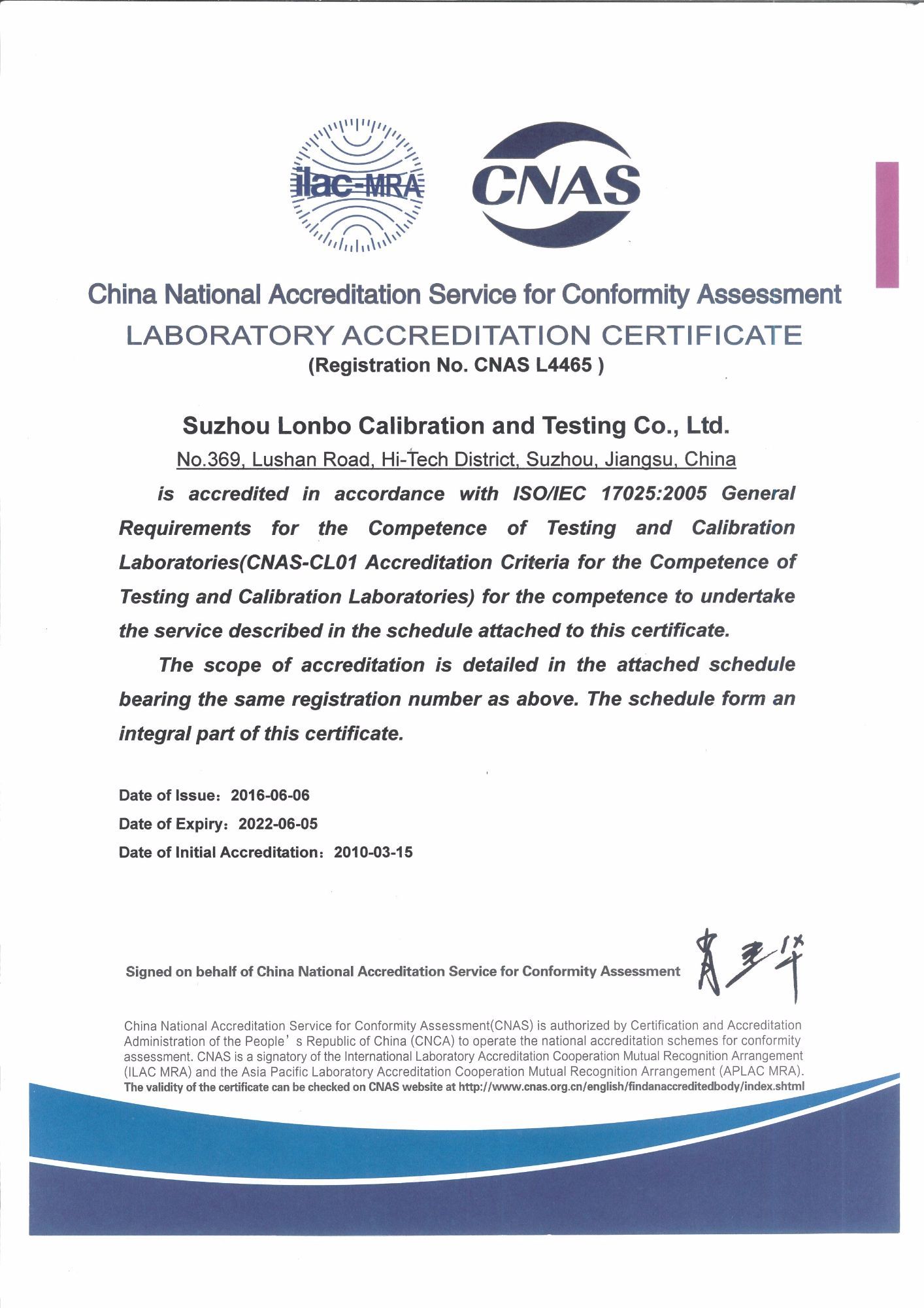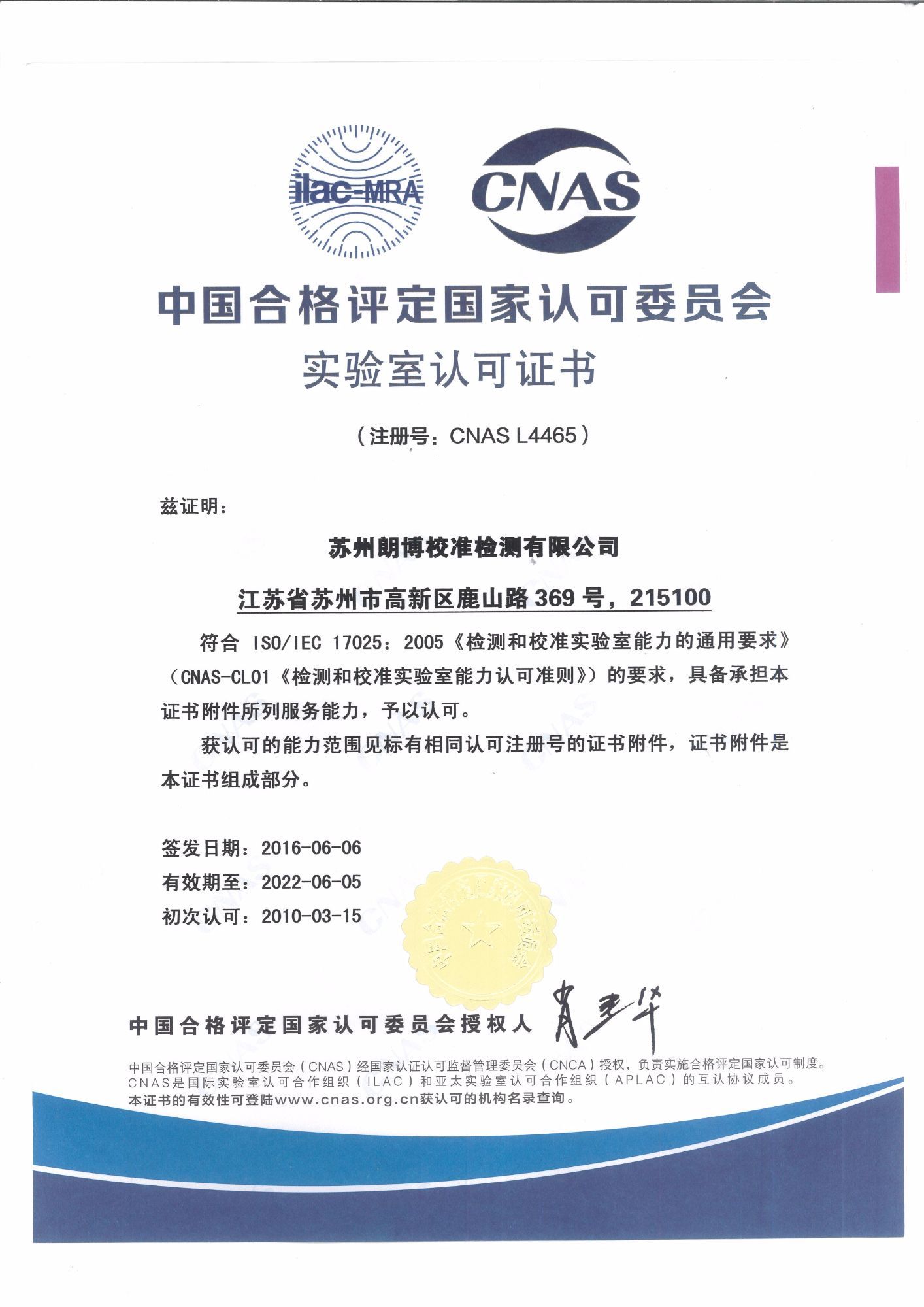 中國合格評(píng)定國家認(rèn)可委員會(huì)實(shí)驗(yàn)室認(rèn)可證書